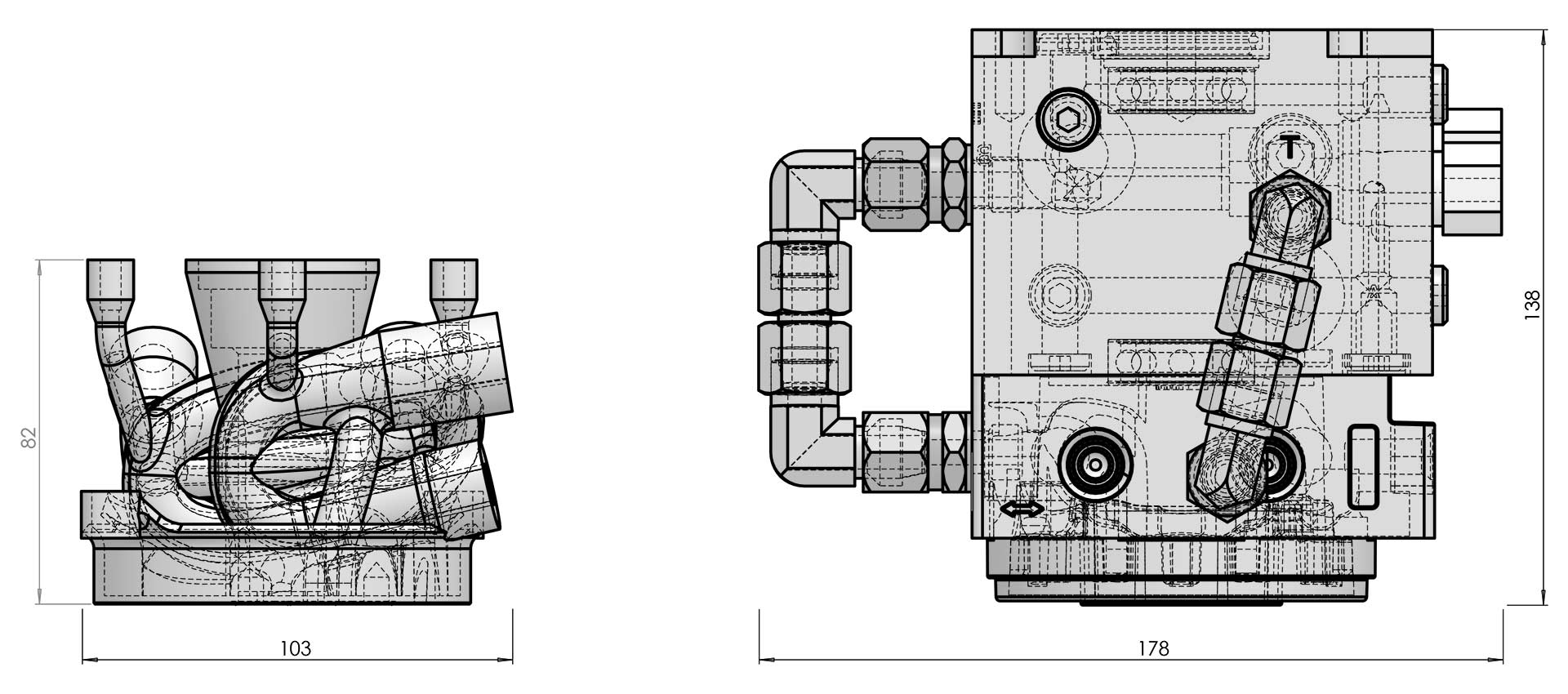 Möglich wurde dies durch ein funktionsoptimiertes Bauteildesign, bei dem die benötigten Kanäle und Bohrungen so eng wir möglich aneinander platziert wurden. Wo ein einfacher Bohrer nur ein gerades Loch herstellen kann, ist es im 3 Druck möglich, komplexe und verschachtelte Kanalstrukturen her zu stellen. Bei der Konstruktion galt es gleichzeitig, die beim 3D-Druckverfahren geltenden Restriktionen wie Überhänge und Stützstrukturen bestmöglich zu berücksichtigen.